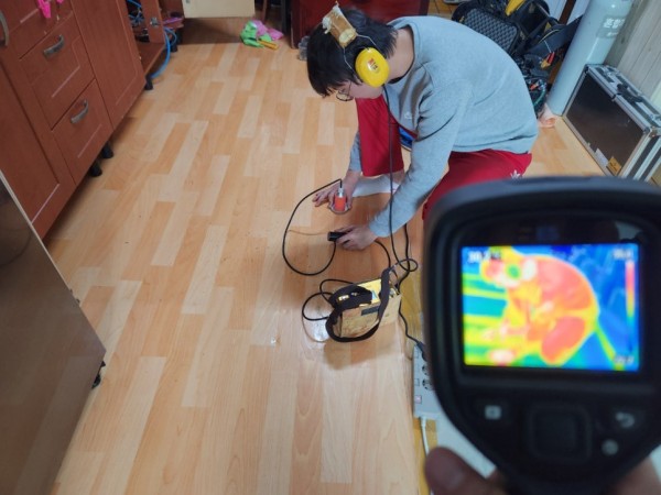천정 누수의 원인을 정확히 탐지하여 해당 부위 보수 공사 완료